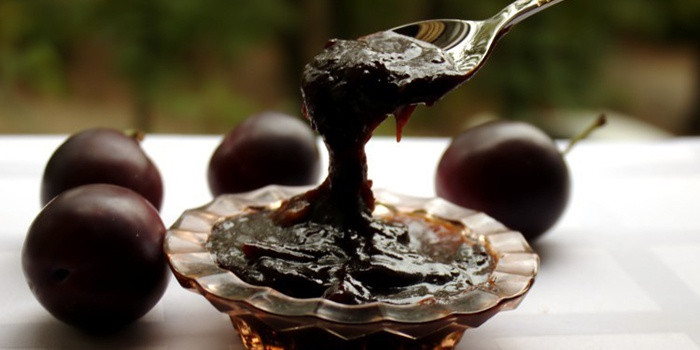 - Слива освобождается от косточек, наполняется половиной сахарного песка, тщательно перемешивается и настаивается в течение 4 часов. По истечении этого времени остаток сахара выливают в кастрюлю, и раствор ставят вариться на 10 минут. Затем добавляется какао, после чего варка длится еще 1 час.