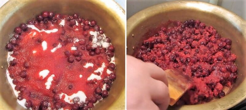 - На всех этапах нагревания важно, чтобы масса хорошо перемешивалась, чтобы сахар не горел. Но будьте осторожны, чтобы не разрушить целостность ягод.