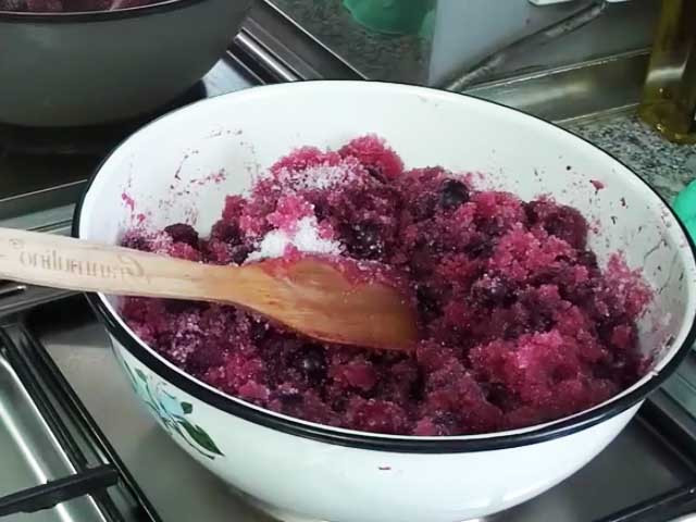 Сахар добавляем по традиционной схеме: 1 кг вишни — 1 кг песка.