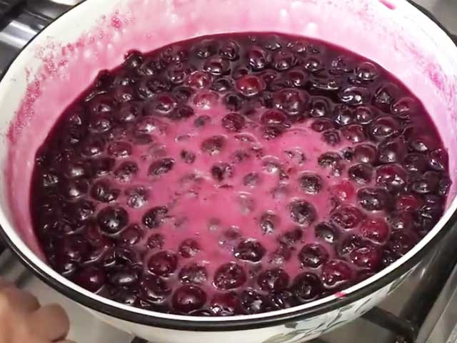 - Но это, конечно, не значит, что мы будем стоять у плиты все это время. Желательно готовить содержимое три раза в течение 5 минут. И все остальное время вишня будет насыщаться сиропом. Я называю этот метод «длинная пятиминутка»