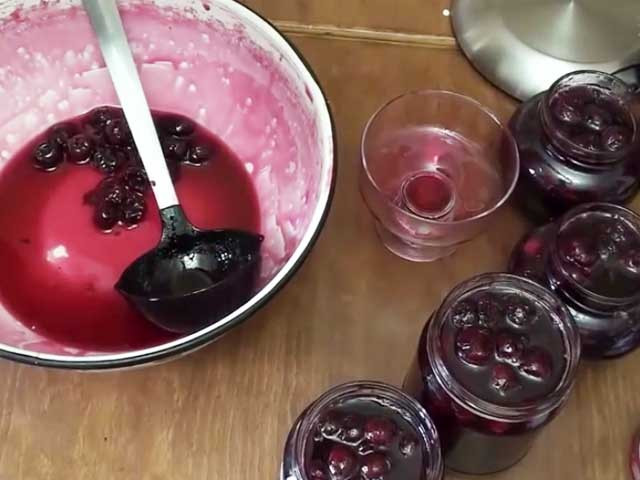 - Варенье из вишни на зиму поместить в стерилизованные банки, со стерильными крышками.