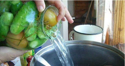 - Поставьте нагреваться чайник, после выключения ошпарьте кипятком огурцы в банке.