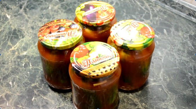 - Простерилизовать банки 10 минут, закатать крышки, укрыть и оставить остывать на ночь. Хранить эту заготовку можно в прохладном темном месте, например, в кладовке.