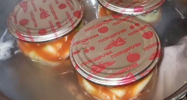 - Стерилизуйте, накрыв крышками, 10 минут.