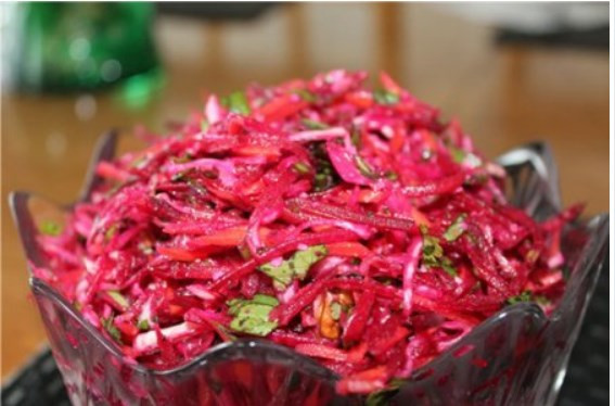 Также не стоит забывать о моркови, она не только добавит яркие краски нашему салату, но, и приятный вкус. Чем мельче вы ее натрете, тем насыщеннее получится цвет.