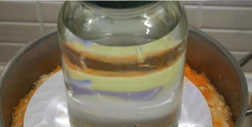 Банки для брожения хорошо вымыты, также желательно их пропарить, чтобы капуста не испортилась. Не рекомендуется использовать посуду с оцинкованным покрытием. Поверх кастрюли с капустой целесообразно создавать — гирьку или кувшин с водой.