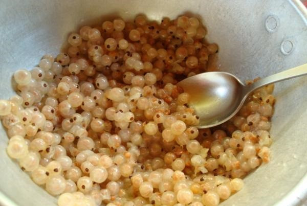 Сама смородина имеет природный пектин, который может образовывать желе. Поэтому для этого рецепта нужны только натуральные ингредиенты: сахар (1,3 кг), ягоды белой смородины (1 кг) и 50 мл чистой воды.Плоды укладывают в кастрюлю, желательно с широким дном. Добавьте воду и плотно закройте крышкой. Этот критерий обязателен, так как ягоды должны быть пропарены и лопнуть. Поставить кастрюлю на слабый огонь и нагревать 5-10 минут. Два-три раза за это время белая смородина помешивается.