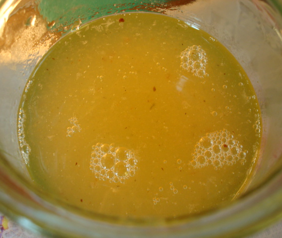- Положите выжатый сок в кастрюлю, добавьте необходимое количество сахара и хорошо перемешайте.