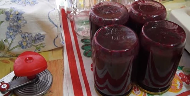 Затем стандартная процедура: ягоды измельчают, объединяют с сахаром (1,2 килограмма) и варят до уменьшения объема в 1,5-2 раза.