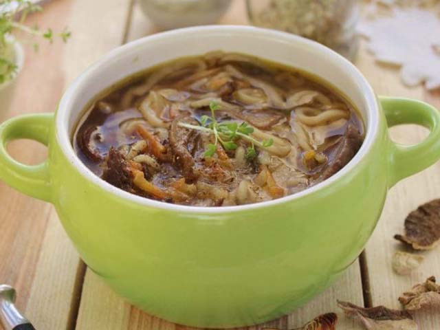 Суп восхитителен по способу изготовления, потому что в него входят очень измельченные грибы. Кроме того, этот способ приготовления не требует длительного настаивания сушеных грибов, поэтому приготовить его можно очень быстро. Чем-то он может напомнить крем-суп.Время приготовления: 50 минут