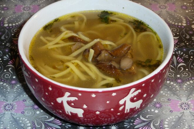 Совет: если у вас в арсенале нет высушенных белых грибов, вы можете заменить их на другие лесные грибы. Например, идеально подойдут рыжики.