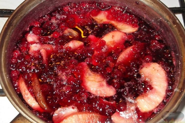 С этими фруктами брусничный джем особенно сладок и вкусен.ингредиенты: