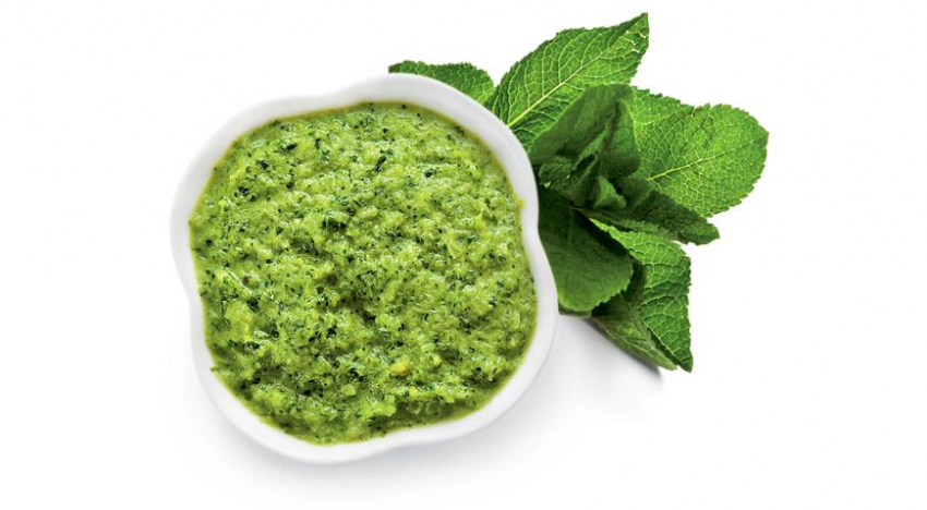 - Смешайте зеленую пасту с измельченным перцем, добавляем соль и кориандр. При необходимости отправьте снова в блендер.