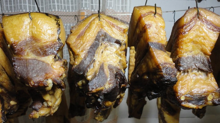 После того как вы прокоптили сало, его требуется снова повесить в проветриваемом помещении на 6-8 часов, так как оно перенасыщено углекислотой (сало будет немного кислым) и ему требуется немного времени чтобы проветрится на свежем воздухе.