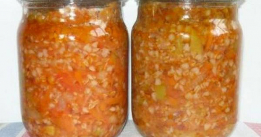 - Предлагаю просмотреть видео-рецепт заготовки салата на зиму с мясом, гречкой и овощами.