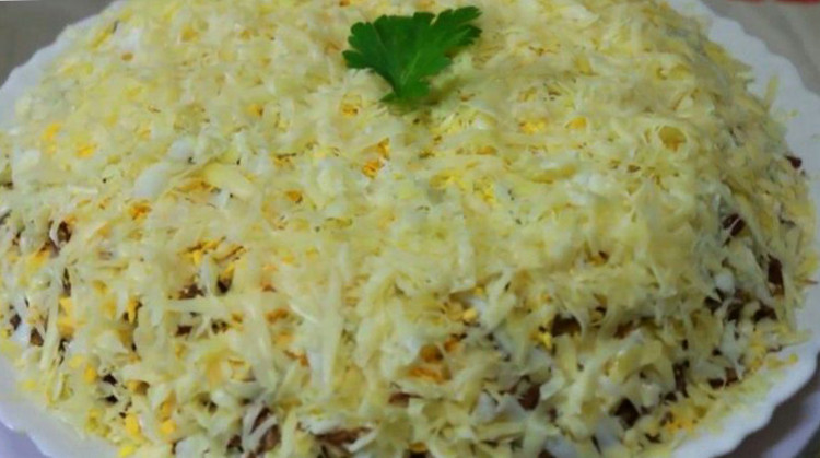 - Интересно, что этот салат может быть слоеным или со смешанными ингредиентами, в зависимости от привычек хозяйки и вкуса мужчины, которому он предназначается.