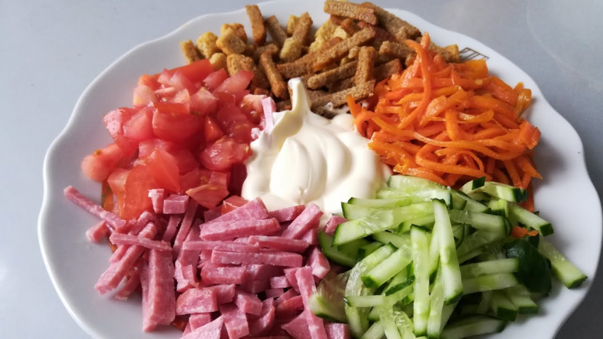 Салат с колбасой Цветик-семицветик