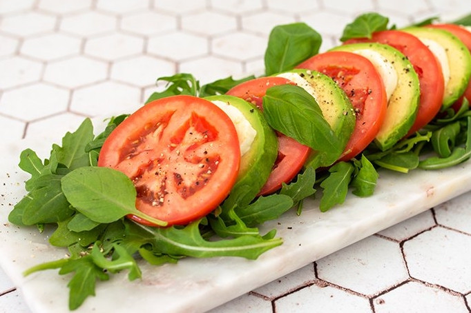 - Готовое капрезе с авокадо можно сразу подавать на стол.