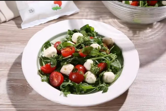 Достаточно широкое распространение получил капрезе с добавлением рукколы.Ингредиенты:
